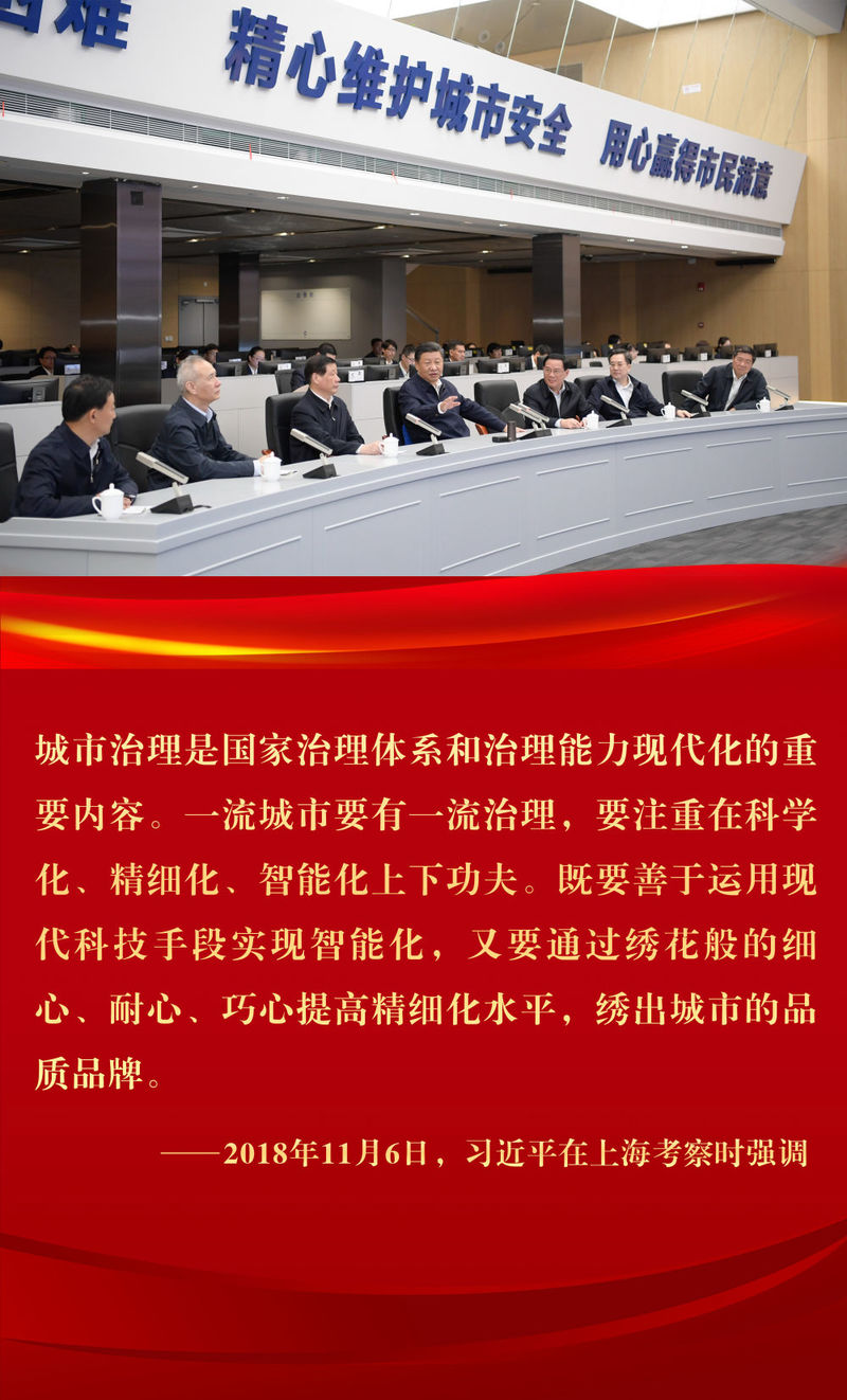 2018年11月6日下午,习近平在上海浦东新区城市运行综合管理中心了解上海城市精细化管理和国际贸易单一窗口运营情况。