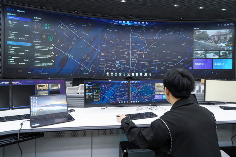 工作人员在江苏省南京市城市运行管理中心指挥大厅操作“一网统管”指挥调度系统(2024年4月11日摄)。近年来,南京市积极构建数字化、智能化、智慧化城市治理体系,将城市运行“一网统管”作为推进城市数字化转型、城市治理体系和治理能力现代化的重要工作。